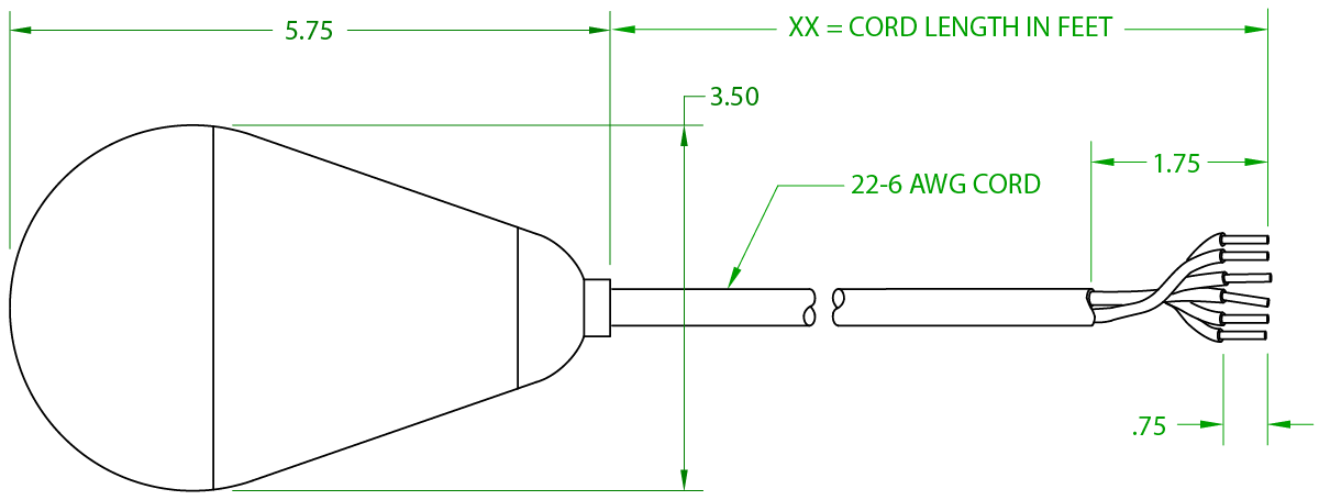 This float has skived ends, where the insulated wire leads inside the cable are intended to be wired into other system components inside a junction box.