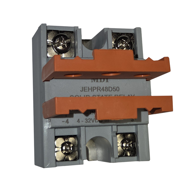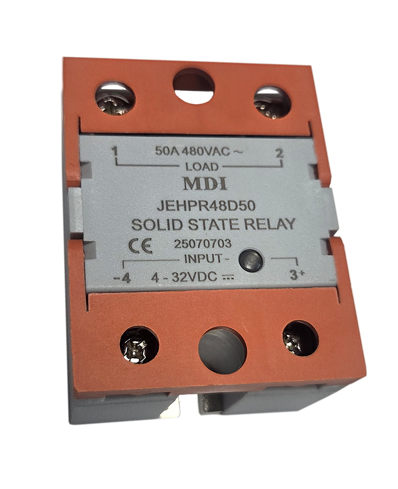 JEHPR is a high power solid state relay, with 4 - 32 VDC input control voltage, with output current 50A and load voltage of 480 VAC. SCR output provides high dv/dt capability more than 500v/µs. The relays provide 4000VAC opto-isolation between input and output. Encapsulating with epoxy resin. Outline dimension is 2.30" x 1.80" x 1.04" (58.6mm x 45.7mm x 26.5mm).